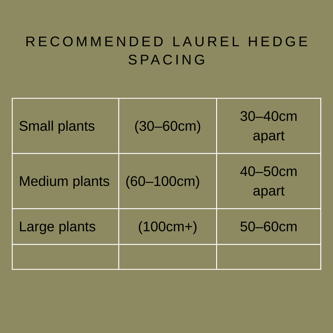 For most garden hedges, laurel plants should be spaced 30-60cm apart.